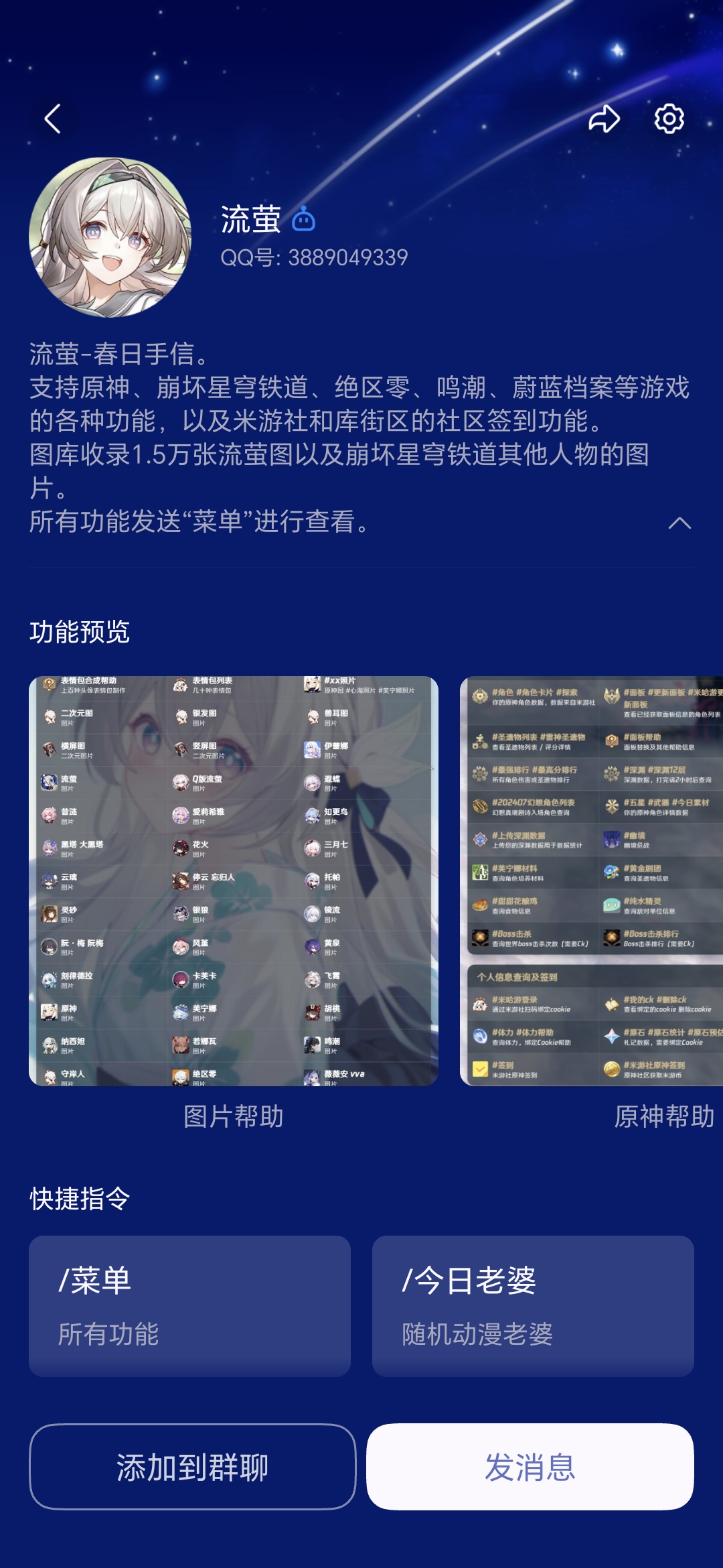 提供原神、星铁、绝区零、鸣潮、蔚蓝档案的各种功能(比如星铁查询角色面板、角色全服排行、角色攻略、当前开拓力、本月星琼收入、混沌虚构末日异相的挑战数据、米游社自动签到。原神、绝区零、鸣潮功能几乎类似星铁),以及米游社和库街区的社区签到。